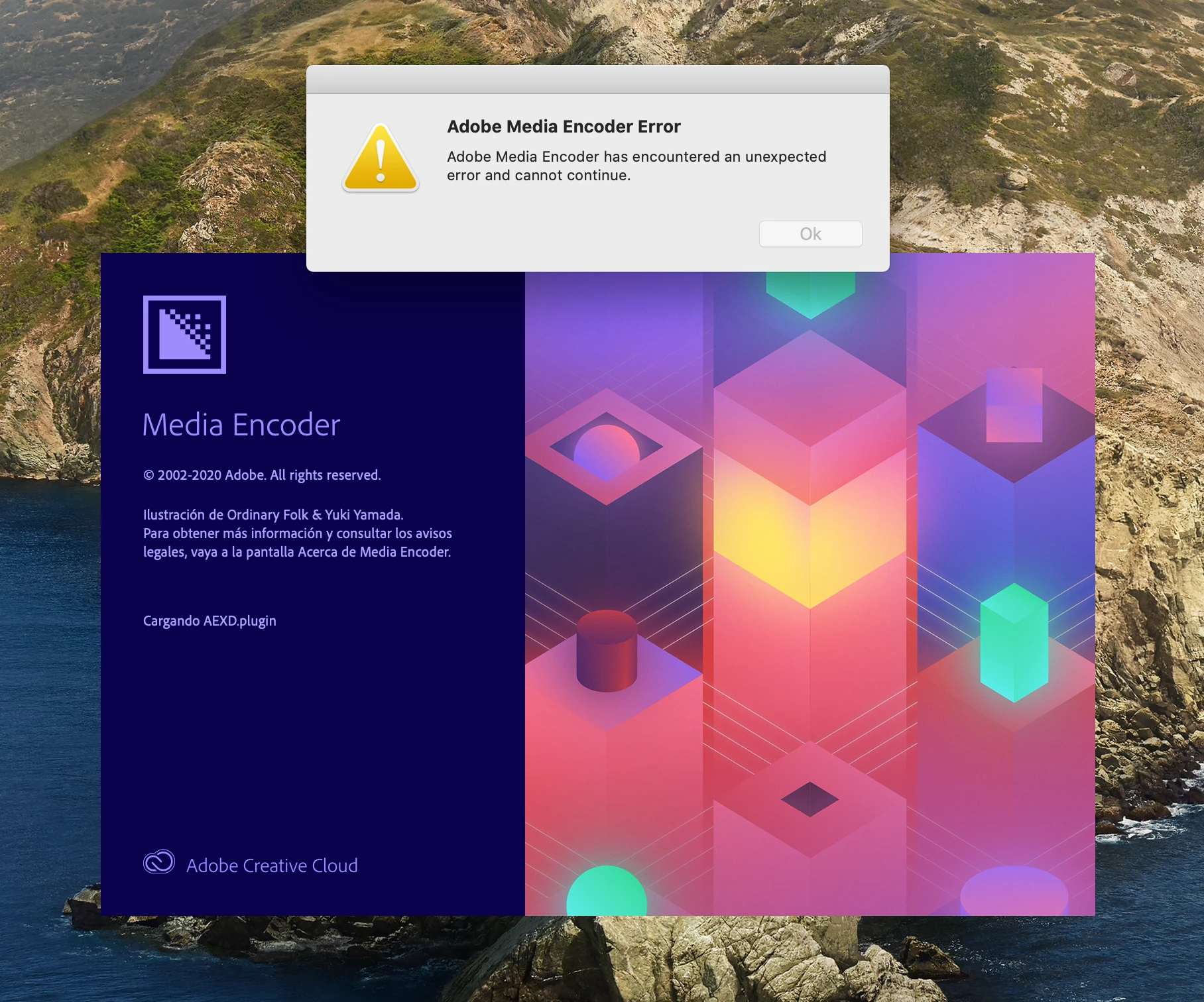el programam media Encoder no esta funcionando en mi equipo, ya lo desintale y lo volvi a intalar y no corre, lo instale en una imac Retina 5k de fianles de 2015 con 32 gb de memoria. me pone el siguente anucnio al cargar la aplicacion: Adobe Media Encoder has an unexpected error and cannot continue.