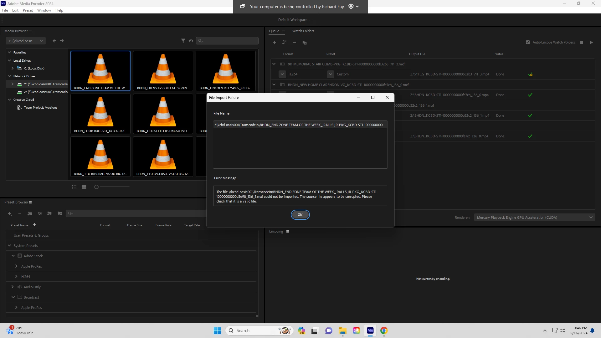 I can veiw the .MXF file just fine in vlc I have roughly 6000 videos left to encode that error out. This is very frustrating.