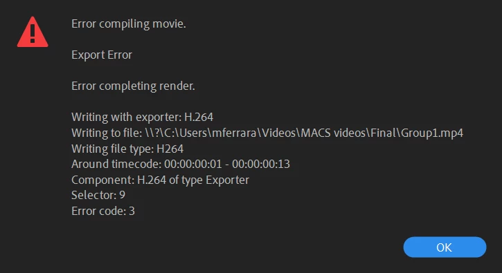 I have been getting this error when trying to export media.