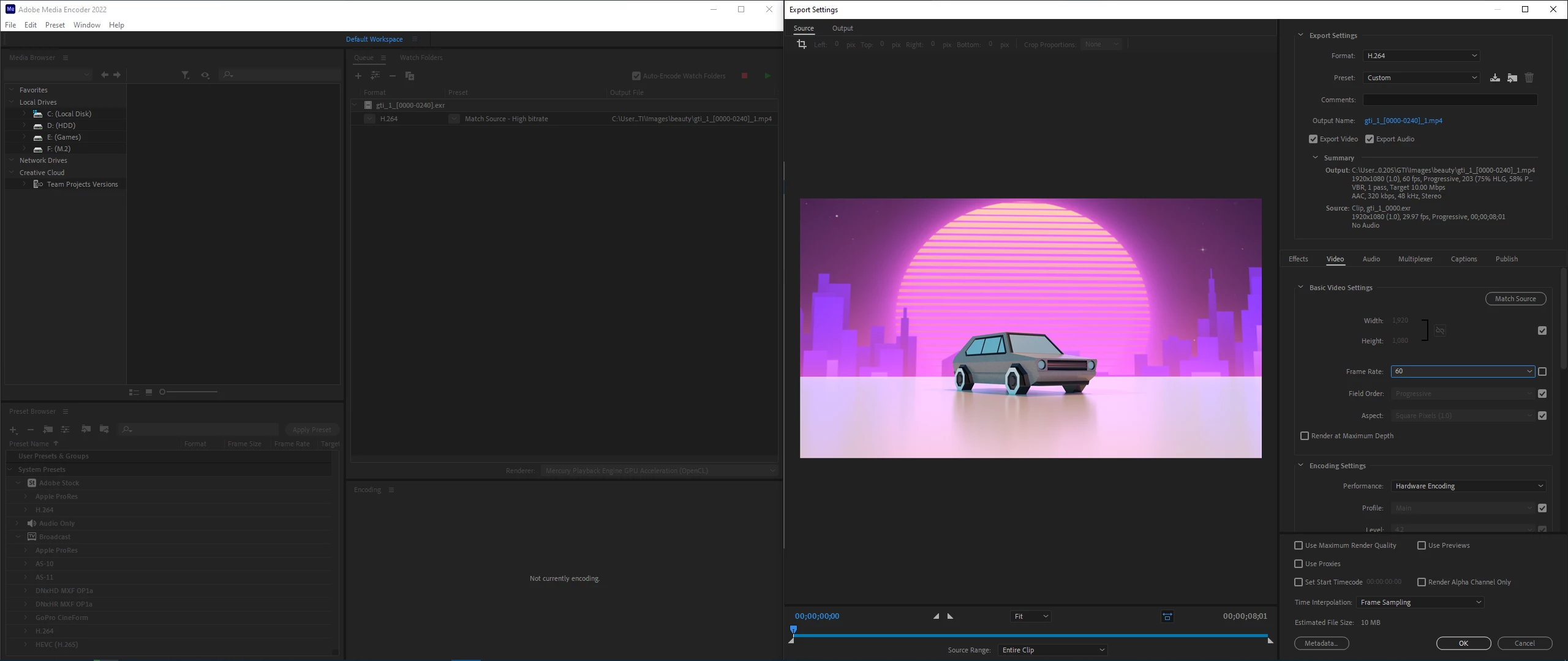 Exporting .exr to video file at 60fps