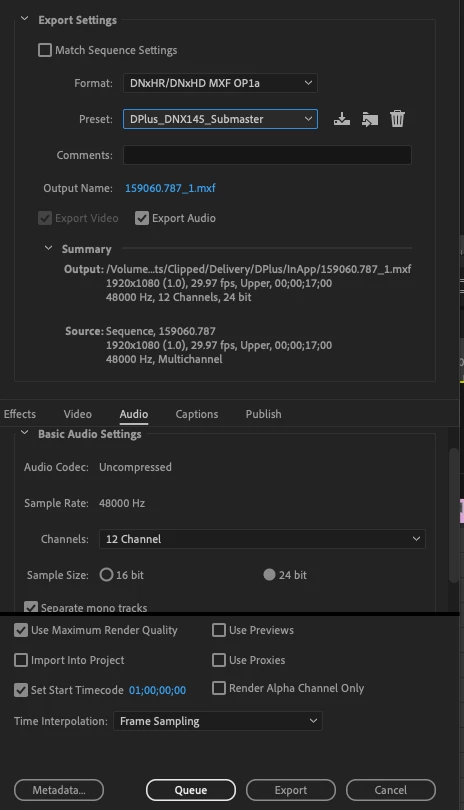 I know I'm probably staring at the problem and will facepalm when I see the answer but I'm trying to export a 12 audio track MXF OP1a and, while it's creating a 12 track file only 8 tracks have audio. the bottom 4 tracks are blank.