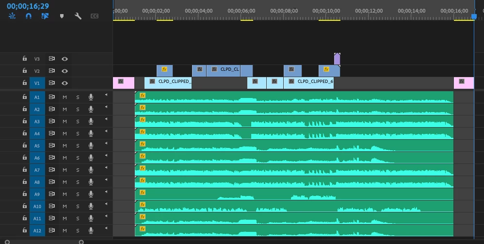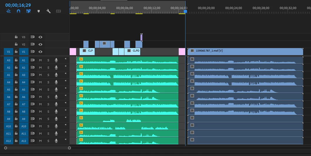 And here is my timeline with the output file dragged in to check (note tracks 9-12 have been created but the audio is blank):