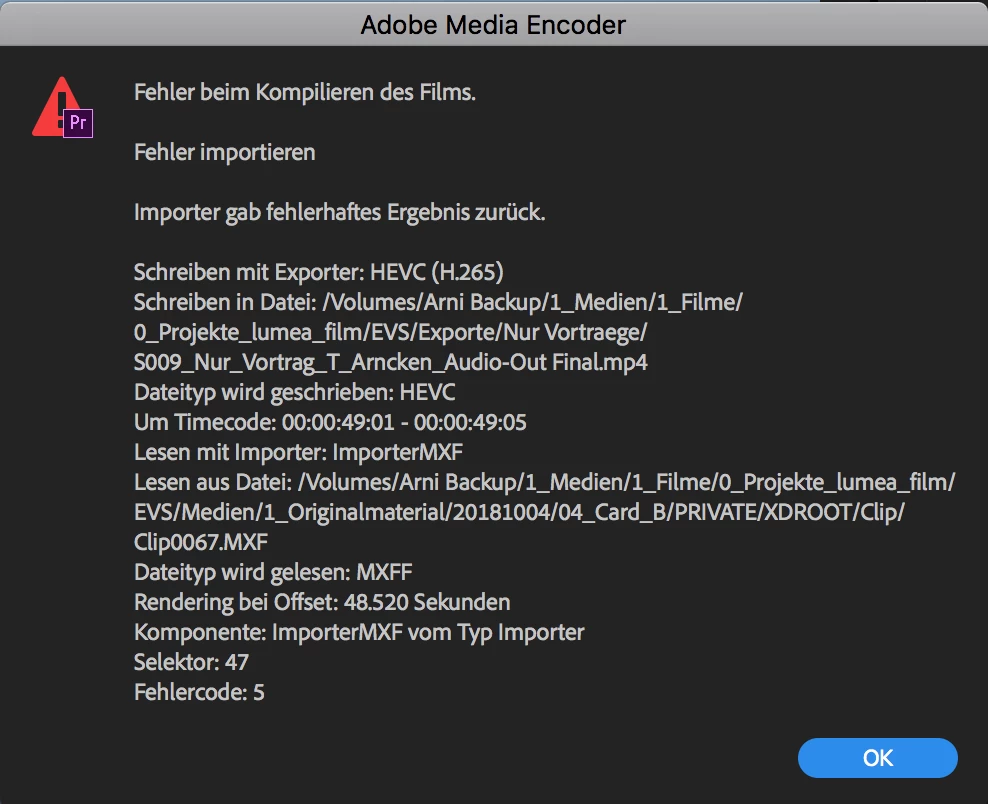 I want to export with media encoder and got the following error-message. I tried several times, but it occurs again and again. Anybody knows a solution to this?