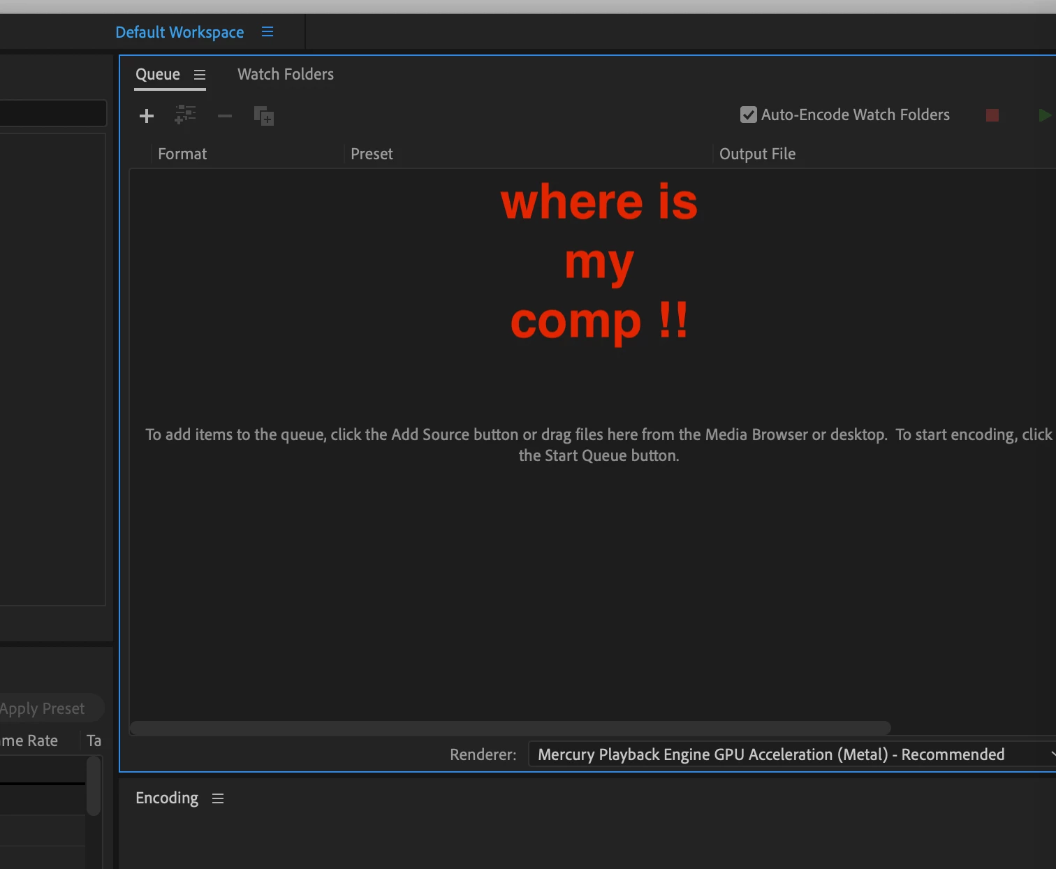 hii .. i add my compsition in after effect to adobe media encoder ... put it not appears in adobe media encoder how can i fix can you help plz