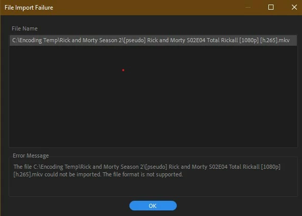When trying to import some media files I want to convert from H265 to H264 for use on an older smart TV that doesnt support the newer coded I simply get "the file format cannot be supported" as shown in the attached file.
