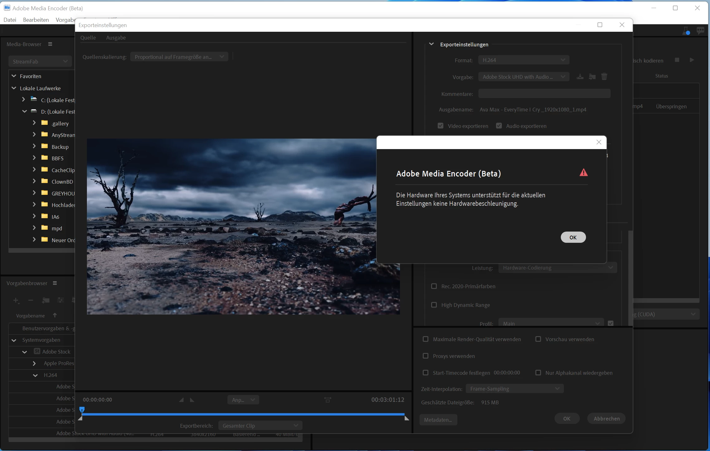 I have an I9 11900K with 32GB RAM and an NVIDIA RTX 3070, but I can't activate hardware acceleration when exporting and I don't know why, according to the specification for the system requirements, this should work with my hardware.