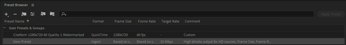 I was hoping someone could help me with creating an ingest preset in Media Encoder. I have already created an encoding preset so I would then have to create the ingest preset as well. However, when I click "create ingest preset" from the plus icon, the only thing that shows up is "New Preset" under my encoding preset and no dialogue box appears for me to actually edit the settings. I have also tried right clicking on the new preset and selecting preset settings but nothing happens then either
