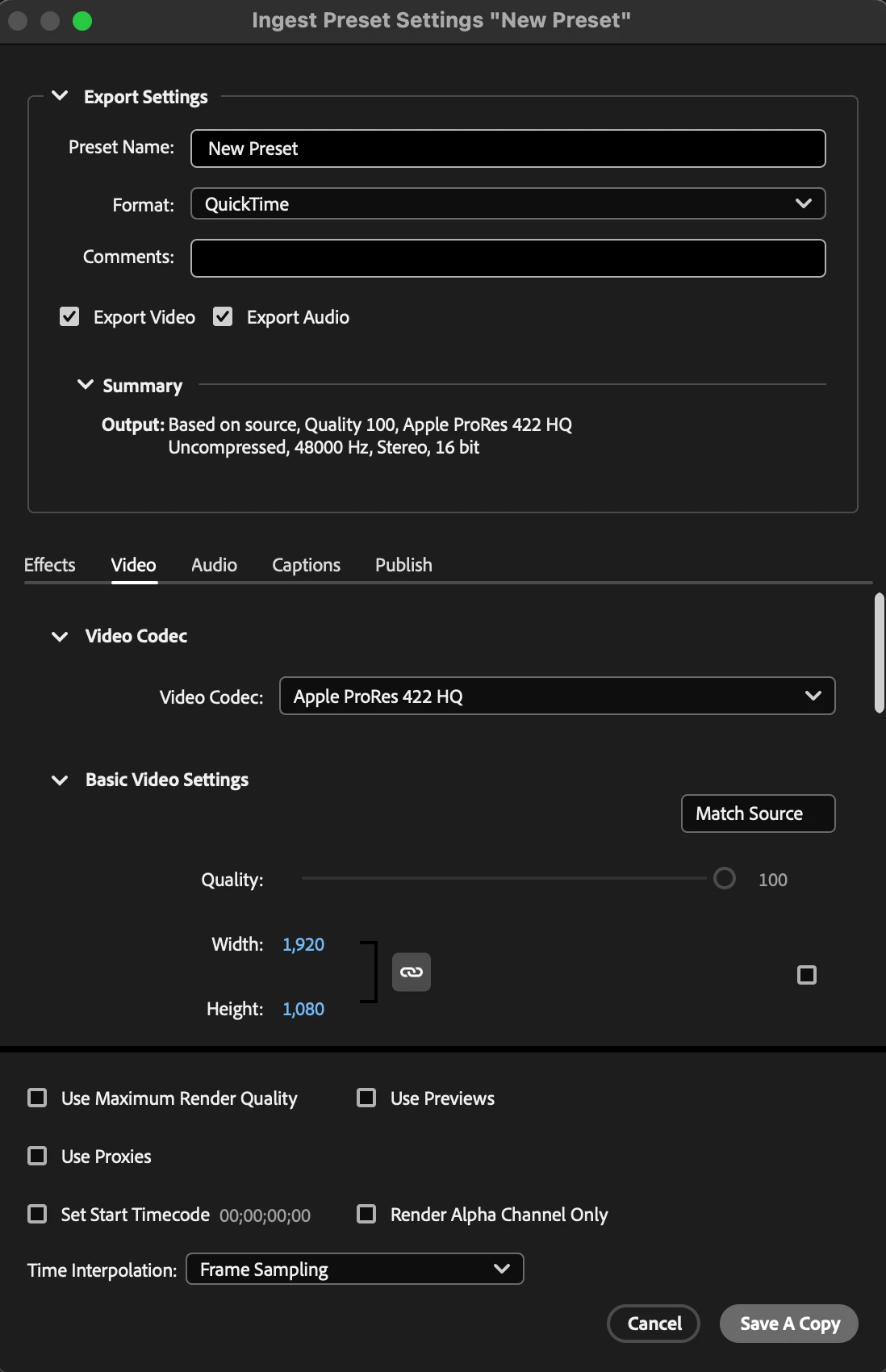 Ingest Preset Dialogue Box Not Showing