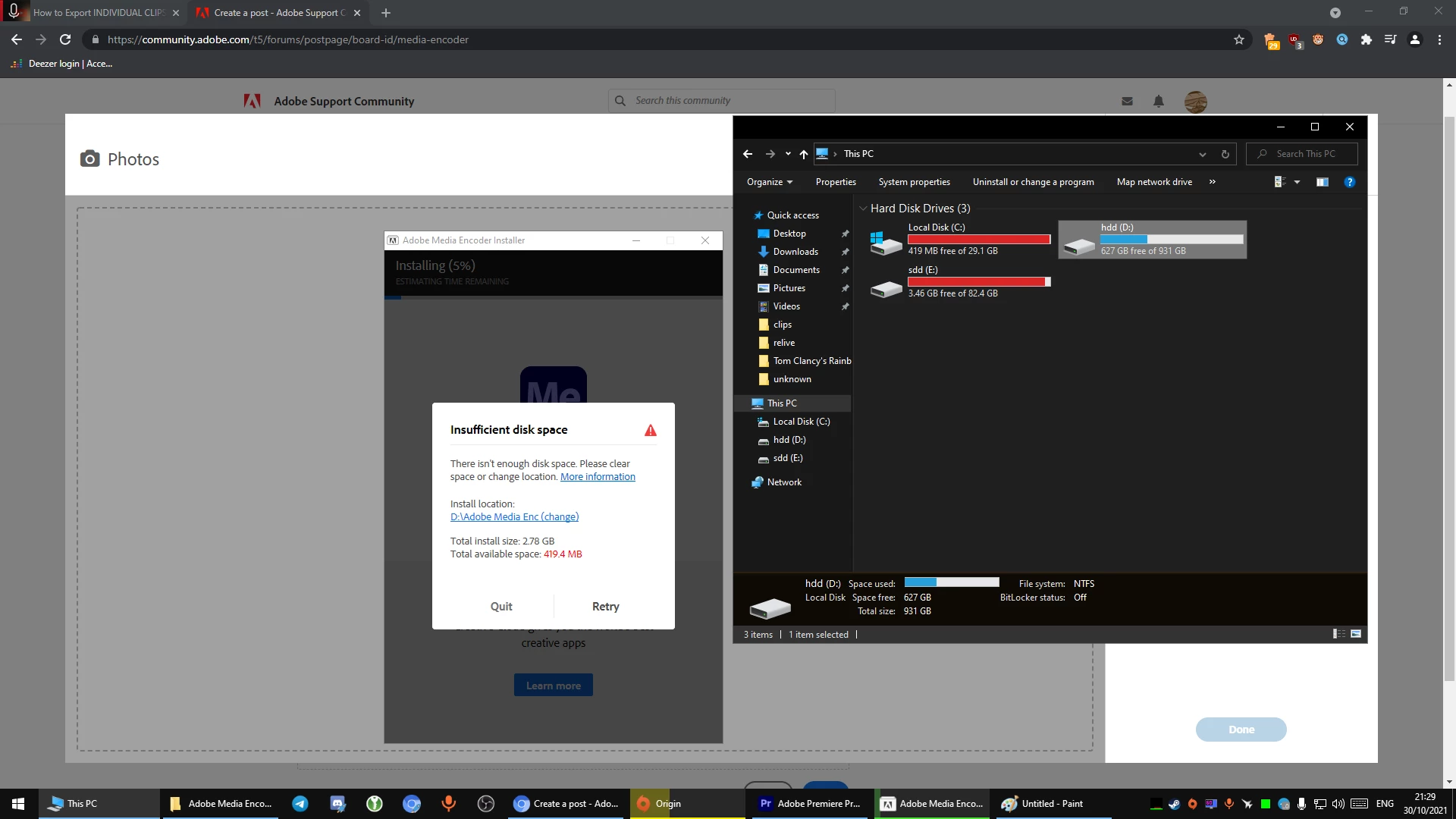 You are quite low on the main system drive. Please try clearing some disk space on the C drive for the temporary files & check if if you are able to install the app. Hope it helps.