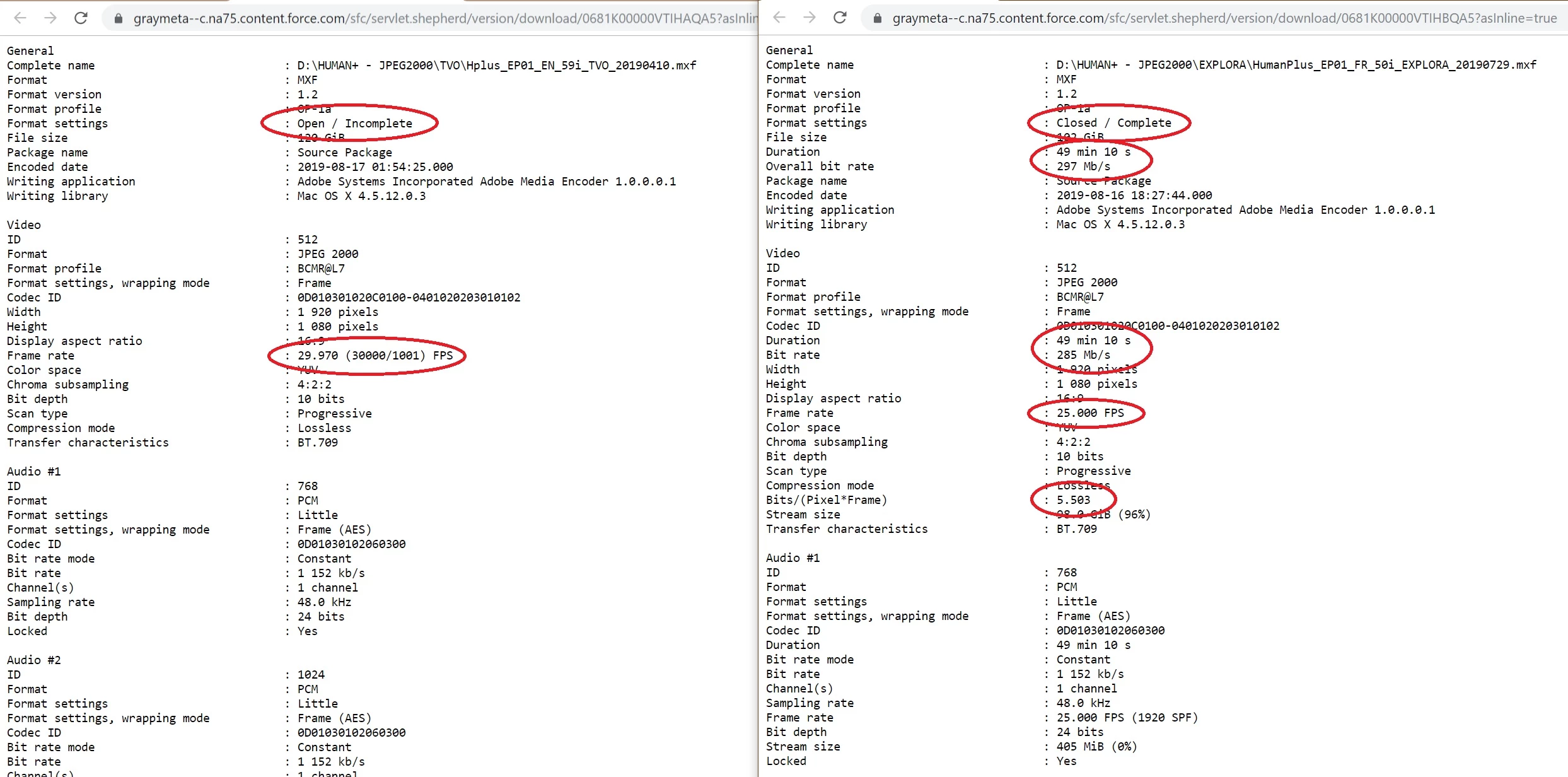 Although one is 50i and the other 59i, both were from an mxf file Op1a.