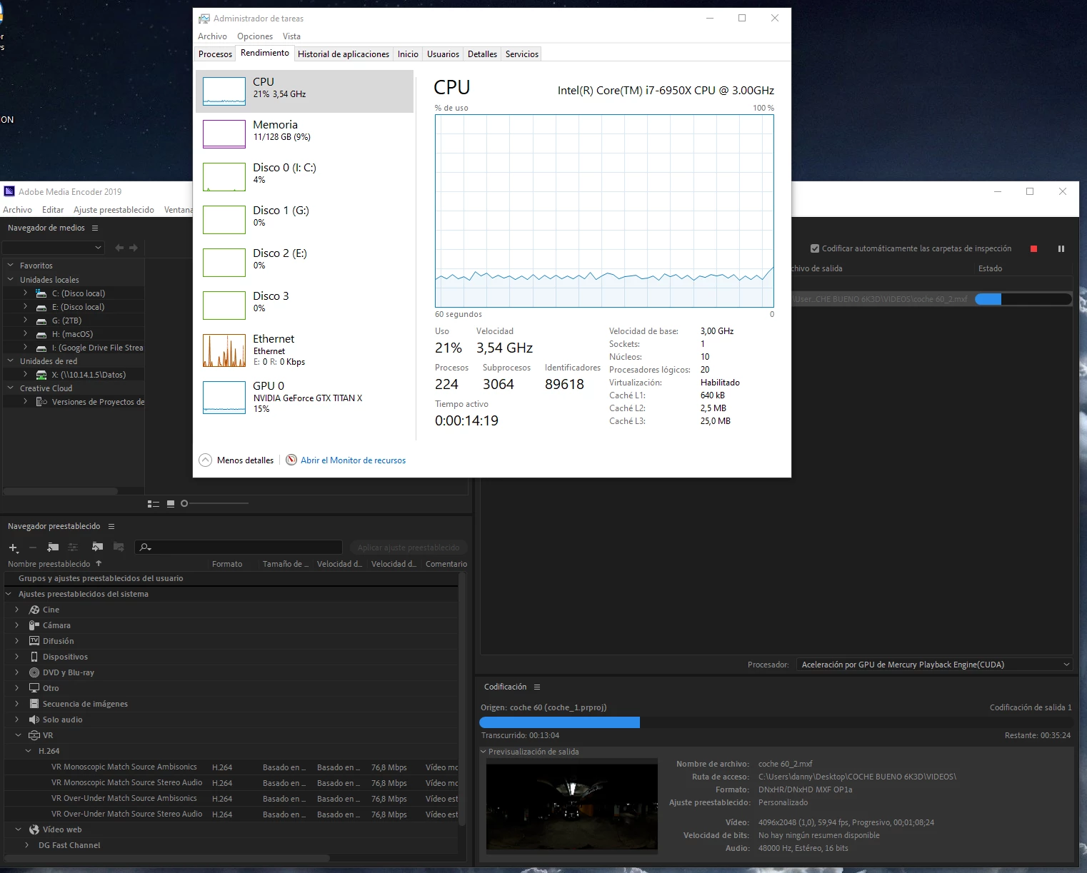 Hi. I´m sending sequences from premiere to AME cc2019. And is very weird to see how little the cpu and gpu are working.