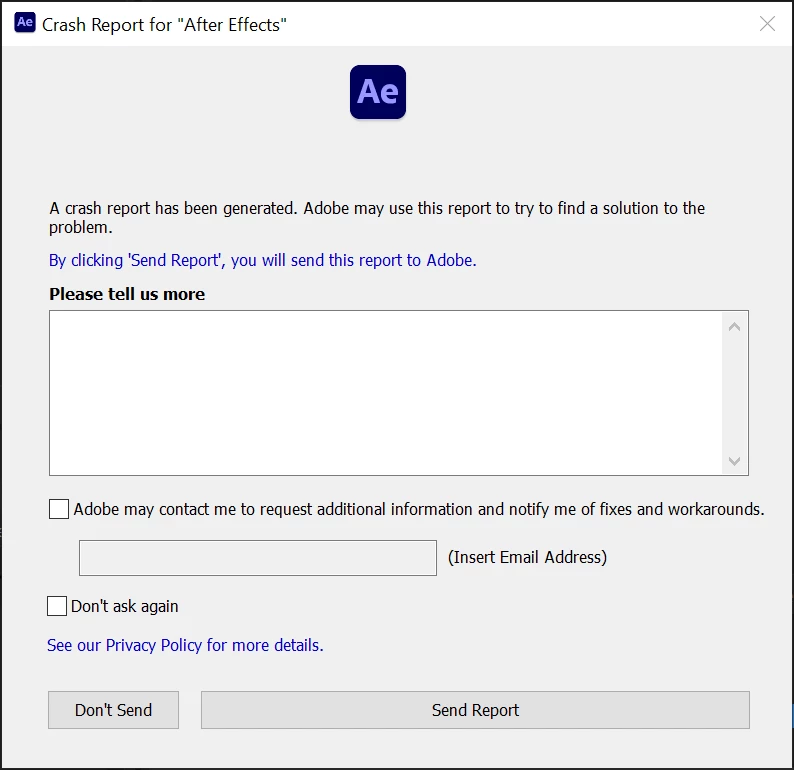<crashreport serviceVersion="3.0.2" clientVersion="3.0.2" applicationName="After Effects" applicationVersion="17.1.4" build="37" source="Windows-Client" crashType="n/a">