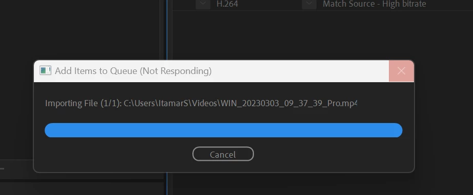 When I try to import a file (mp4_ to media encoder - it freezes.