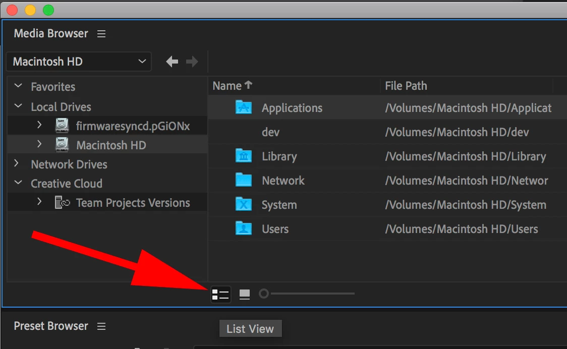 Adobe Media Encoder question -- Newbie here -- sorry if this is basic, but I can't find a way to change my preference to show only lists of file names in the Media Browser. I don't want to see thumbnails or preview video, just file names. Thanks so much.