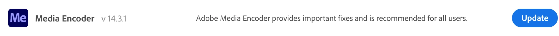 To update Media Encoder, open the Creative Cloud desktop application and click Update.