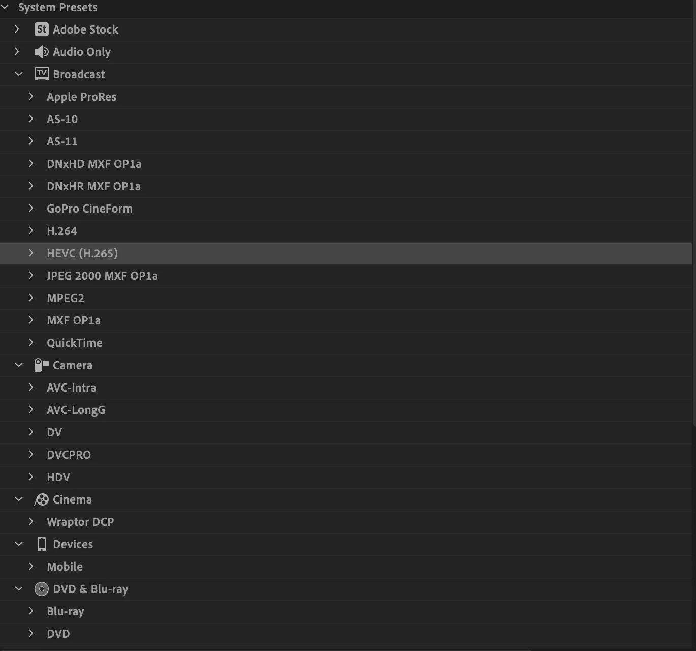 I'm using Media Encoder 14.4 (build 35), which I have confirmed there is HEVC (H.265) within the system presets, but it still can't decode video files shot with canon log (hevc 10bit 4:2:0).