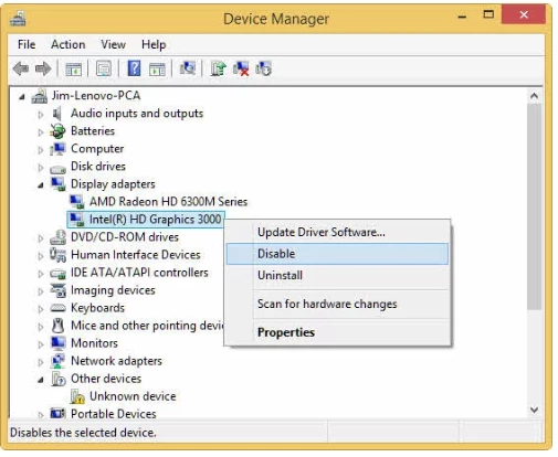 2. Try launching the application after disabling the Nvidia graphics card from Device manager.