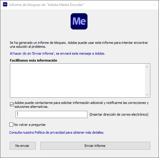 I have a system with an AMD Ryzen 9 3900x and a GPU Power Colour 5700XT, 32 GB Ram and when I send mi stuff from Premier up to Media Encoder, I get this message and it closes