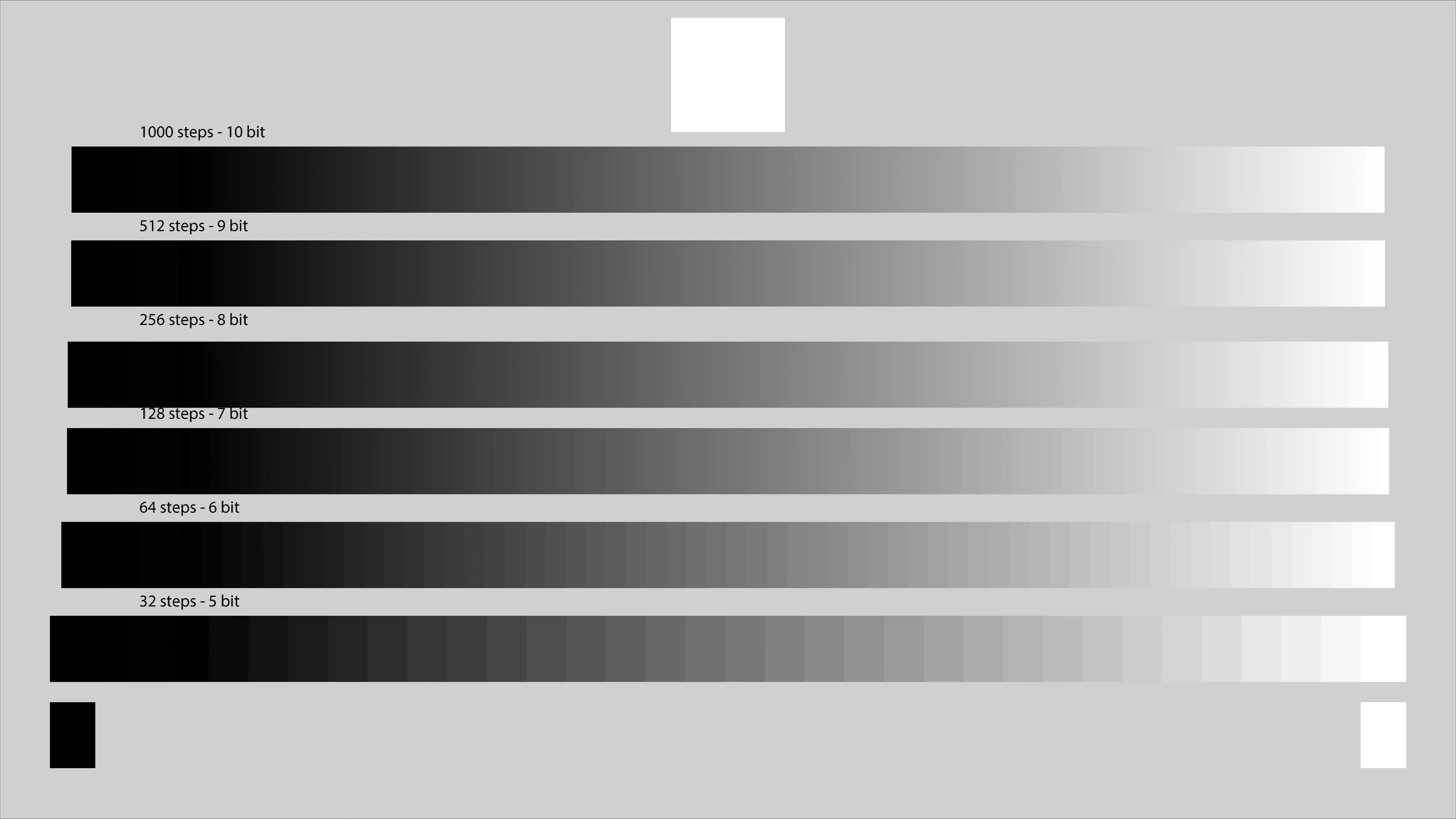 This was made from an Illustrator file, when I did a blend with the specific number of steps (Blend maxes out at 1000 steps, so I couldn't do 1024 for 10 bit). Just note that there is more and more banding the further down you go in the chart.
