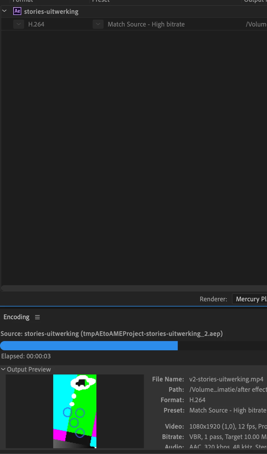 - It (only) works when I export to render queue as lossless first and then import in media encoder, but this is not very efficient..