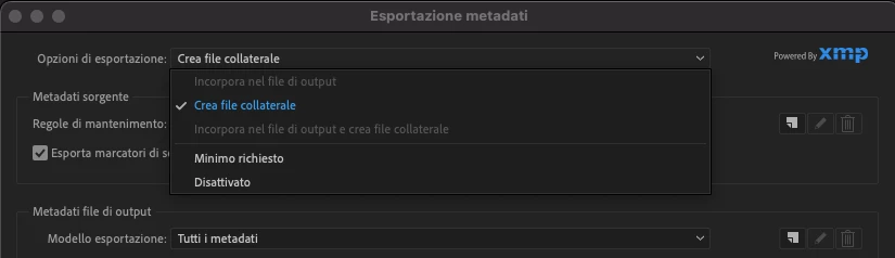 Not all metadata can be included in .mp4 files. that is why the .xmp sidecar file is created. .mov and .mxf containers do support all metadata fields.