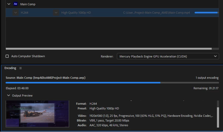 I'm unsure if it's because of one of the settings that I accidentally ticked or, if that's how Media Encoder works.