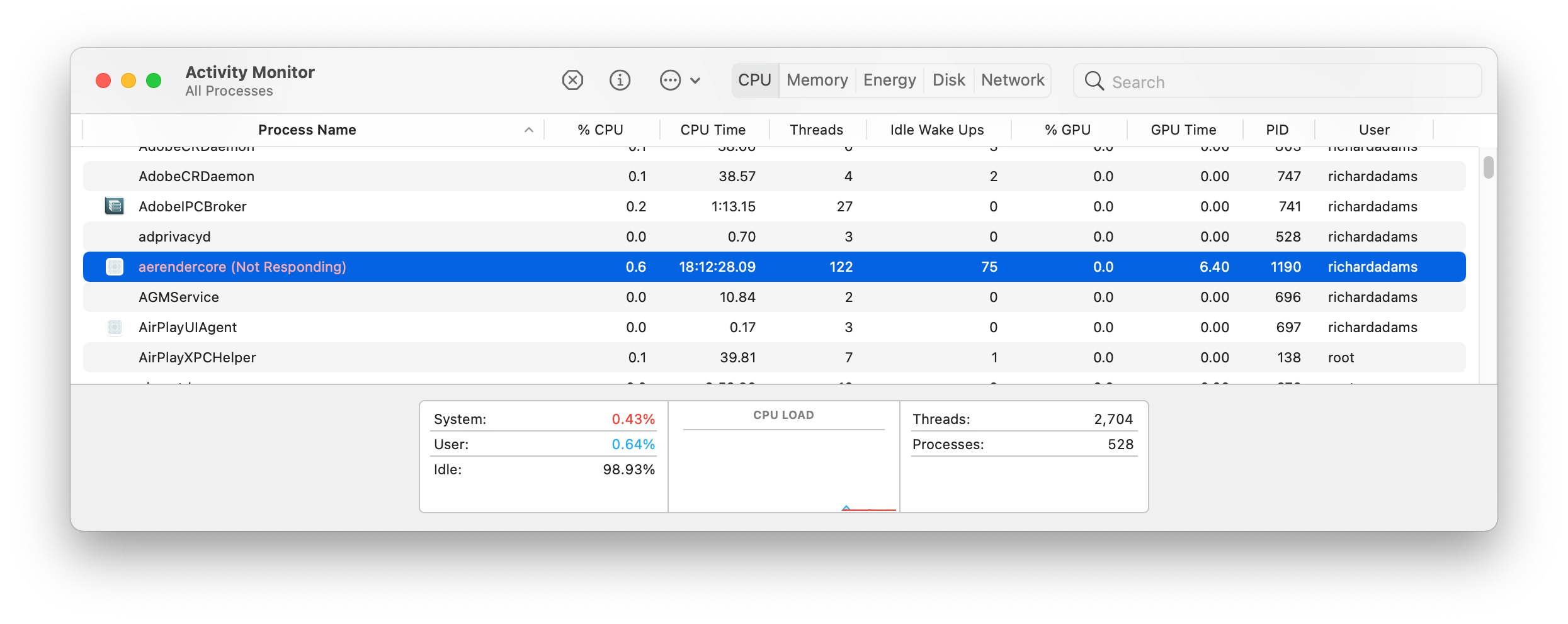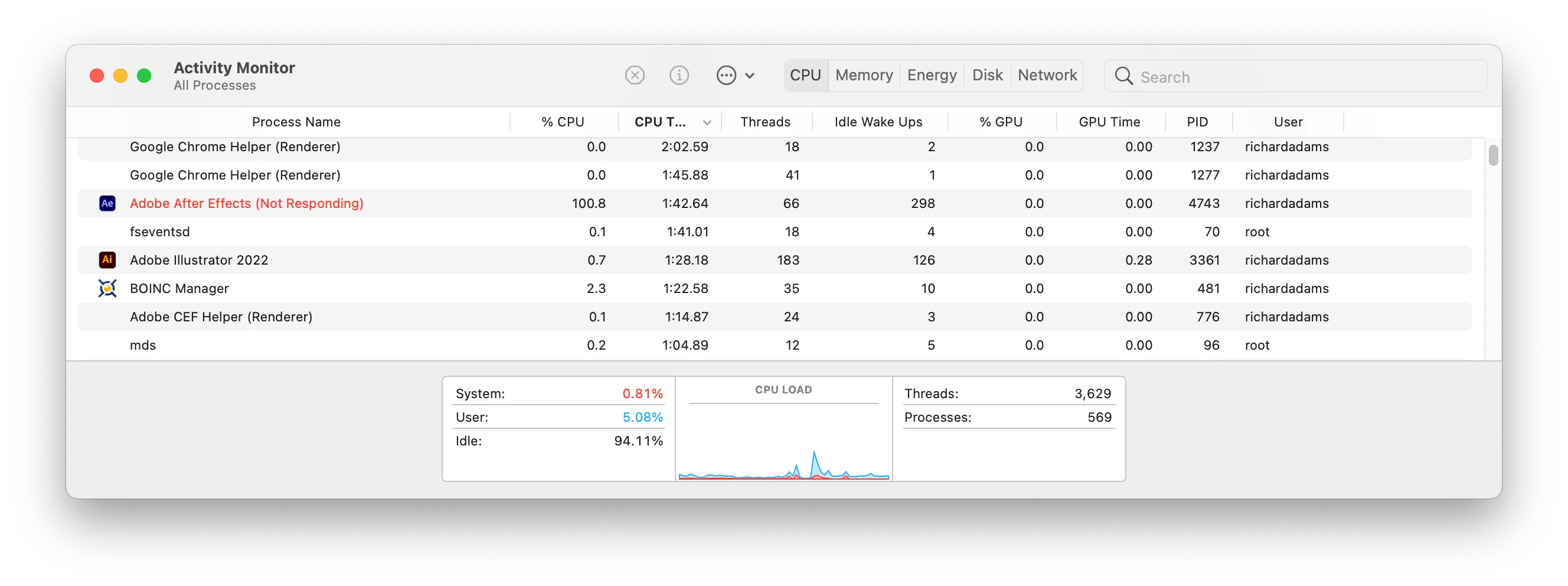 I tried uninstalling Creative Cloud and chose "Repair" instead. After restart, the freezing continues. It was suggested that I change the renderer, but I am using the recommended Mercury Playback Engine GPU Acceleration (Metal)