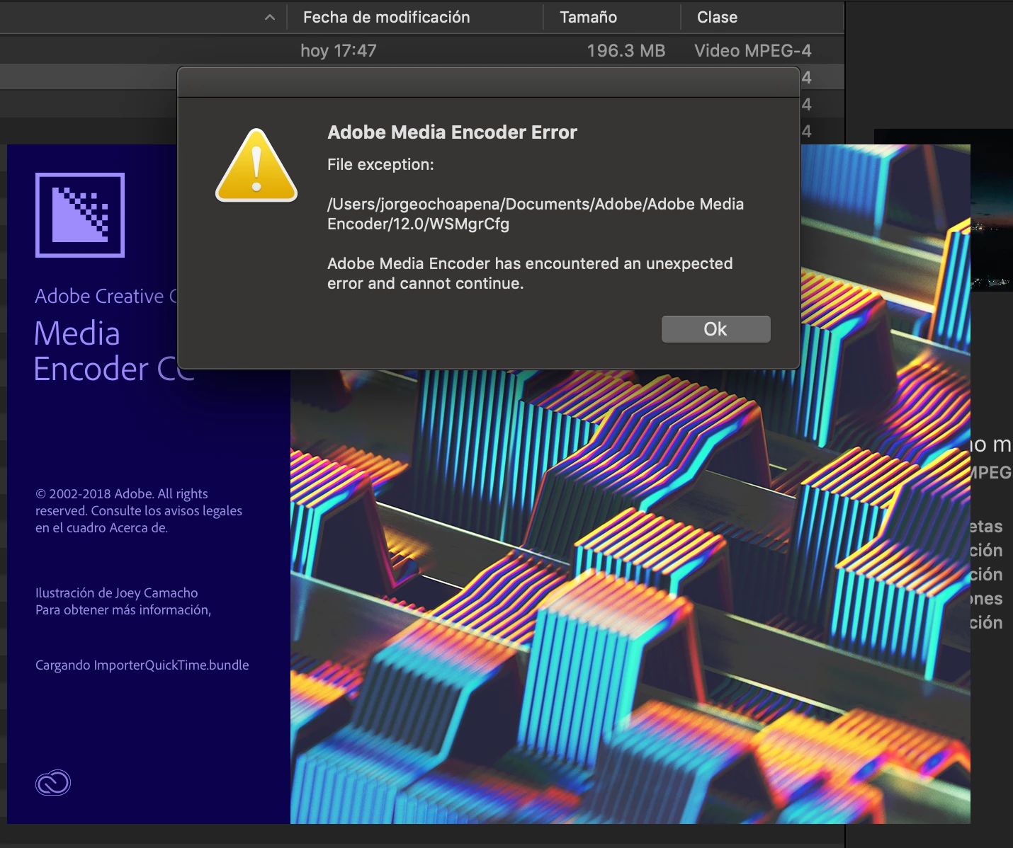 Desde hace unos 3 días me sale este error al intentar abrir Media Encoder. Qué me recomiendan hacer? Saludos