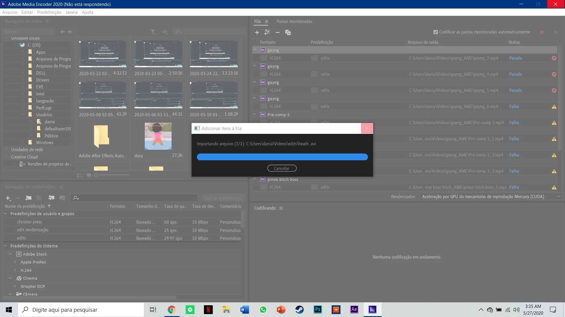 Media Encoder not responding