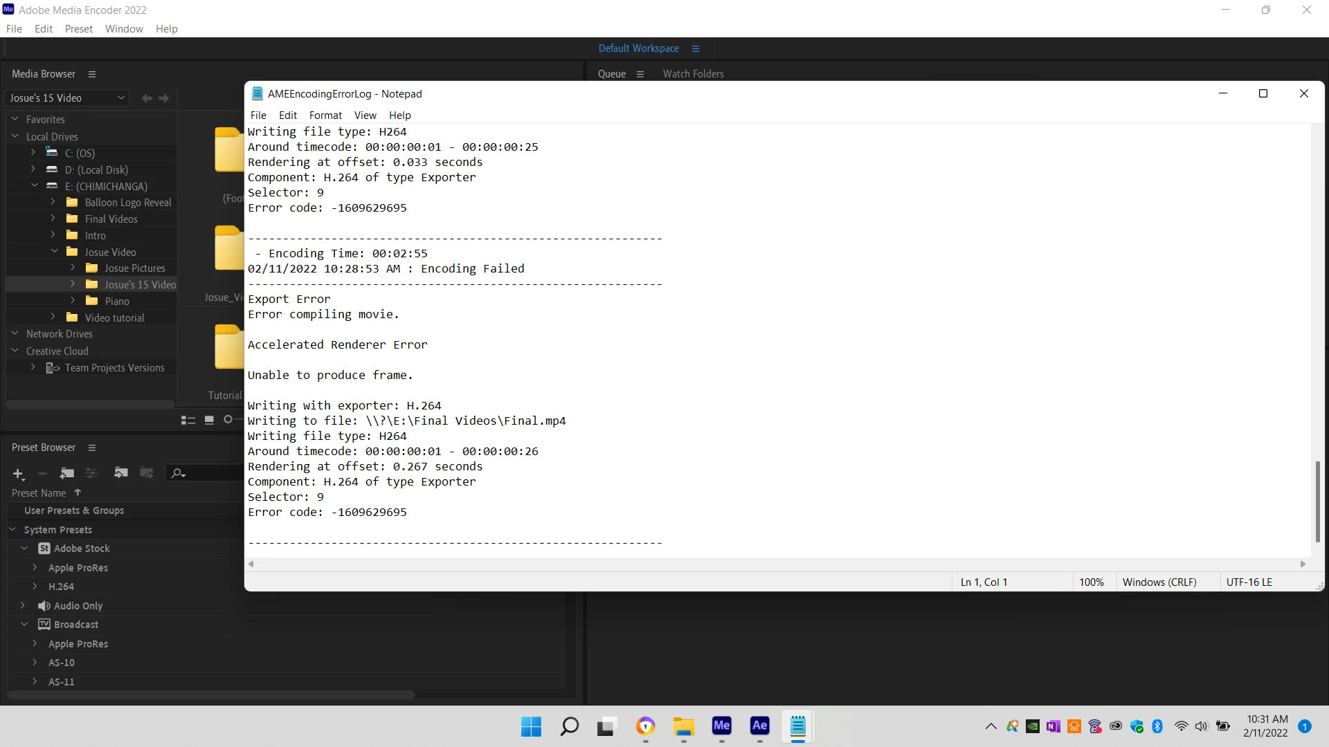 02/11/2022 10:28:53 AM : Encoding Failed