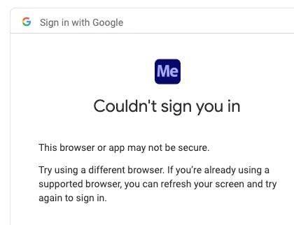 I think this was posted here a long time ago, but I can't find a solution. I've signed out of all of the YouTube channels I usually have connected in the export dialog in Premiere, but it's not letting me log in again - I'm getting the message in this screenshot. I've tried changing my system's default browser, and restarting everything, but not getting anywhere. Any help much appreciated, thank you.