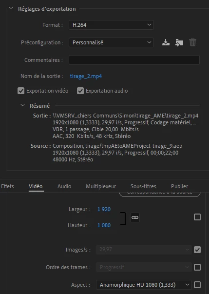 I'm gonna leave some screenshots here (in french) to help but like I said, I'm don't know much about video rendering and format.