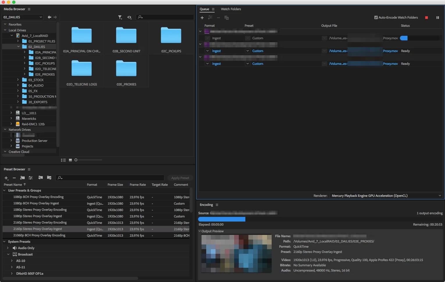 Hey all. I have 5 Mac Pros (3.1 and above with a minimum of 24GB RAM) running OSes from El Capitan up to Sierra driven by either GTX 970s or 980s (all 4GB) flashed for Mac. I have never had issues with these in the past. They're all running the latest NVIDIA web drivers and CUDA drivers, rendering on both open CL and CUDA (while I was trying to find the solution), and Media Encoder seems to be doing this weird thing where it will show an active encode for about 5 minutes, and then the UI freezes.