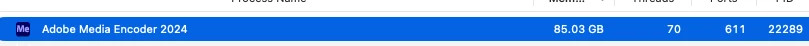 Not sure how to resolve this, but ME takes up gobs of memory during the encoding process no matter what I seem to do to alleviate it in Premiere. You can see screenshots below (but total memory was up to 98.63 GB when it finished).