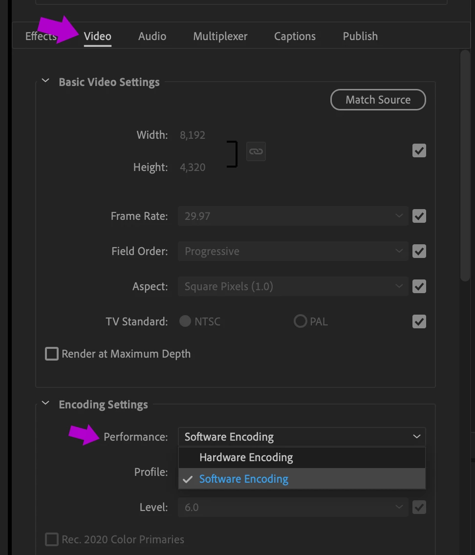 When converting recordings from a Sony Anycast to H.264, I get an error popup "your system does not support hardware acceleration for the current settings". The only way it allows me to enable hardware acceralation is by choosing the 'Base' H.264 profile. Why might this be?