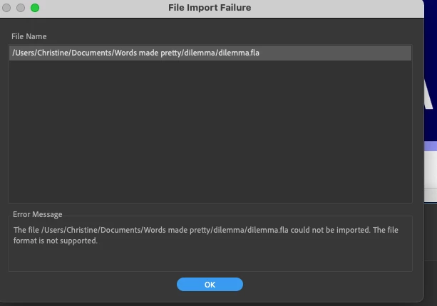 I haven't workin with Animate for a few months. I went to put in my newly completed short work (about 36 seconds) and Media encoder won't take it.
