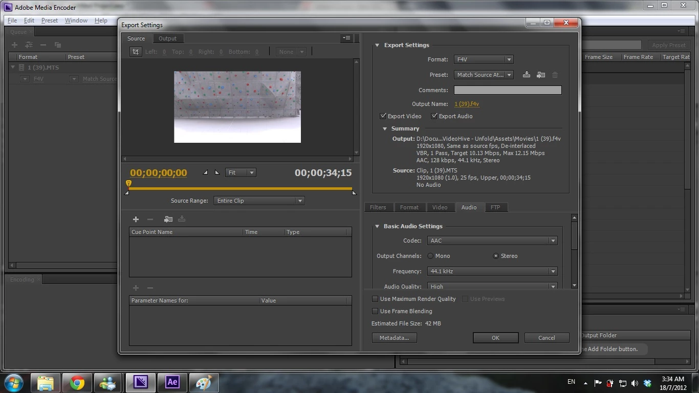 I'm trying to convert .mts files to .f4v or some other working format in AME but AME shows that there is No Audio in the source as below.