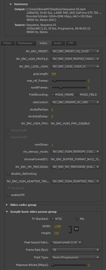 Back then, i don't know now wich version i had, I was only able to export to 1280x720 and at 29,97NTSC FPS (If i tried 1920x1080 an error would come up and well,NOPE!,nothing,just close down the app). The Mp4box and Nero Audio thing were correctly set, i even saved the Format/Setting into a setting to never forget and it's still there. Everything worked fine until this version came up and just updated the contents of the Nvenc_export.prm files like the instructions said (Dunno if mp4box and Nero were updated too though). Wanted to install this 1.09 version to see if i could finally be able to export to 1920x1080 60FPS for gameplay recordings)