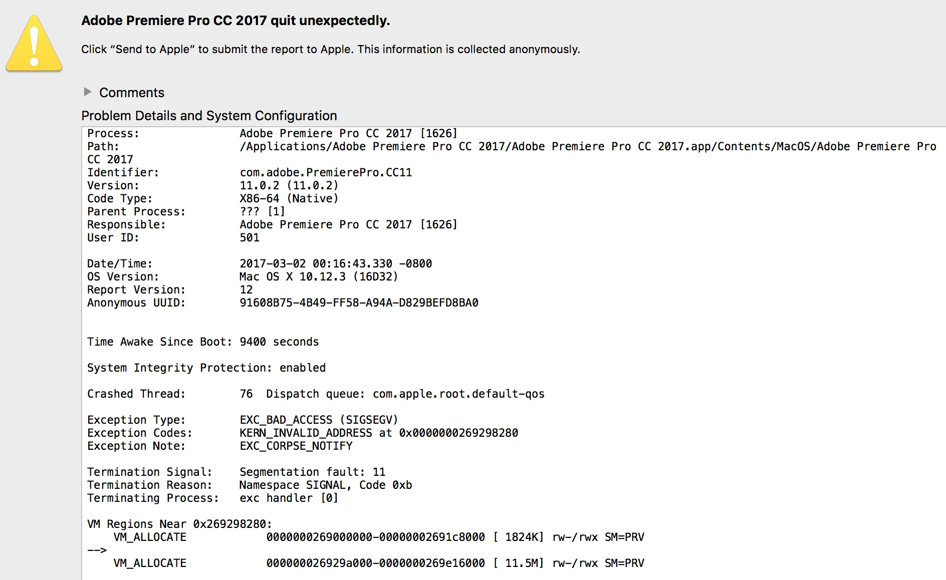 Premiere and Media Encoder Crashing at Same Spot "Failed to Render Frame"