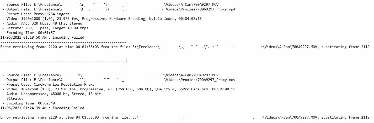 I've already tried every different proxy preset ingest setting, even made a few of my own in Media Encoder. Nothing seems to work, errors out at the same timestamp.