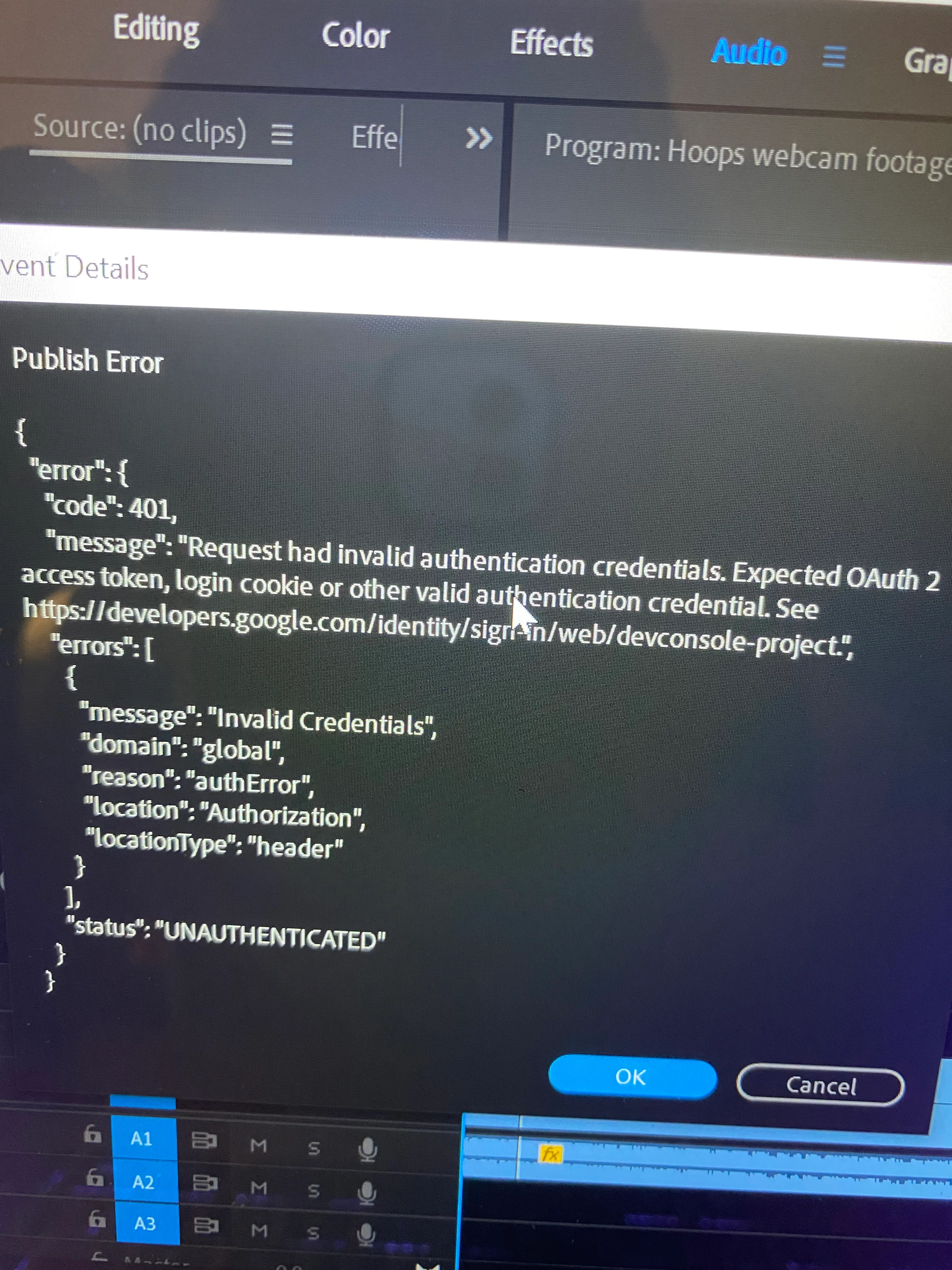 I normally render to an output folder and then manually upload to YouTube, but I was exporting roughly 40 videos and wanted to automate the process. Here are some errors I am having.
