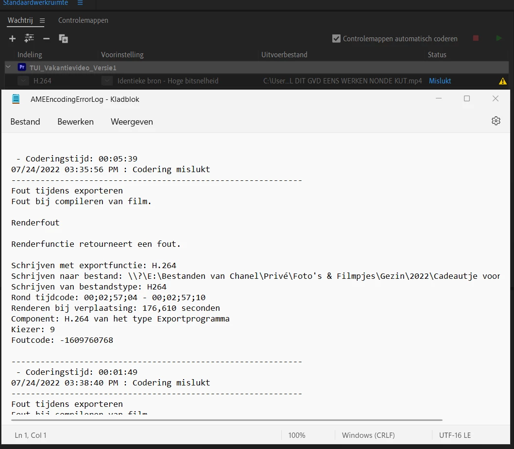 I tried to export a video but I keep getting the following error during the last few seconds.