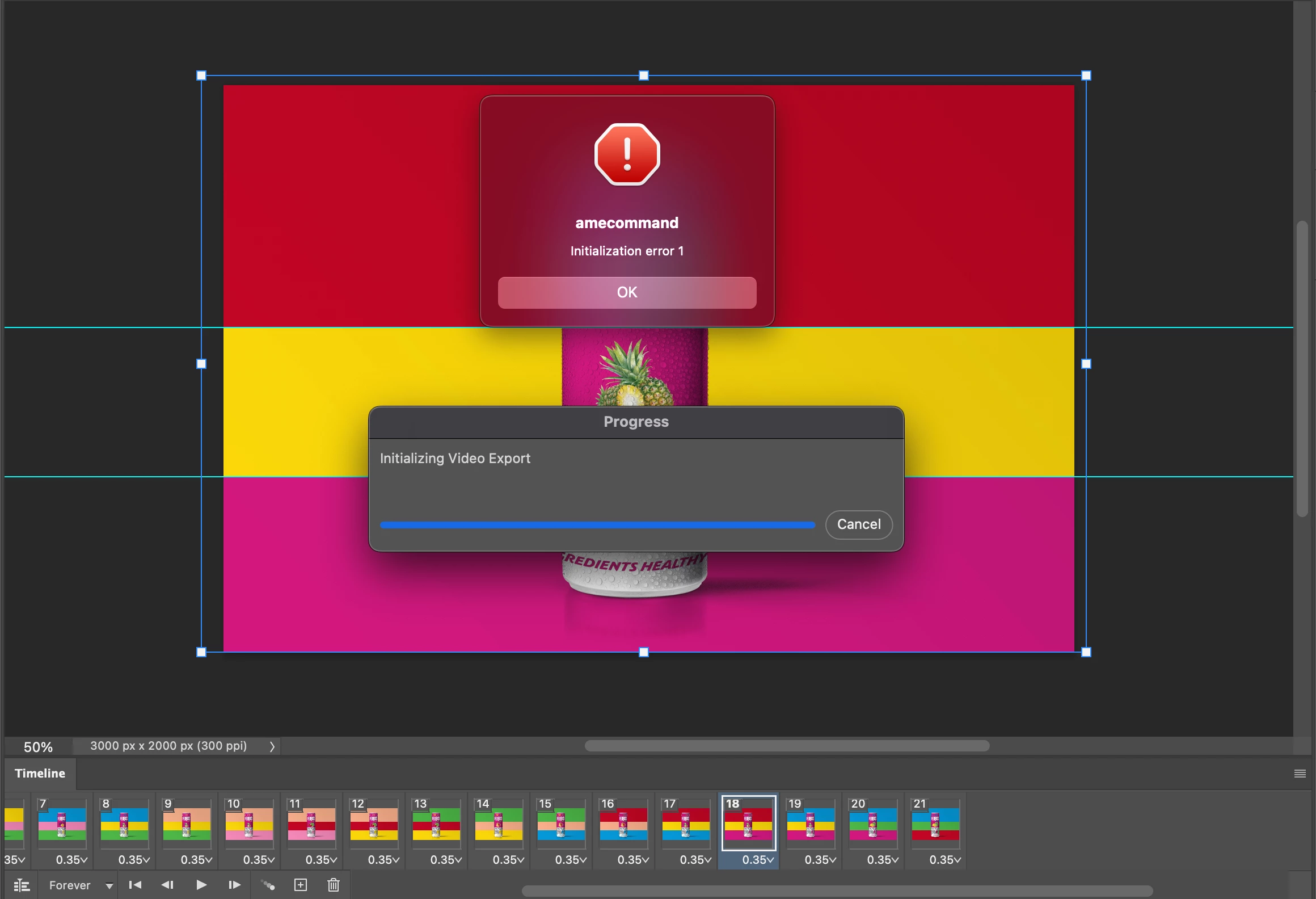 I keep getting this error message (amecommand Initilization error 1), when I try to render a video in Photoshop & Photoshop Beta, both the newest versions.