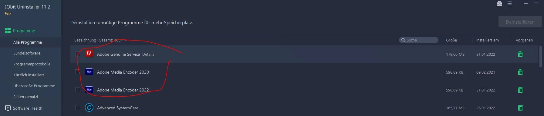 Ich habe aller meine ADOBE programen deinstaliert. Trotzdem bleiben noch reste von Adobe Media Encoder 2020 auf mein pc bestehen.