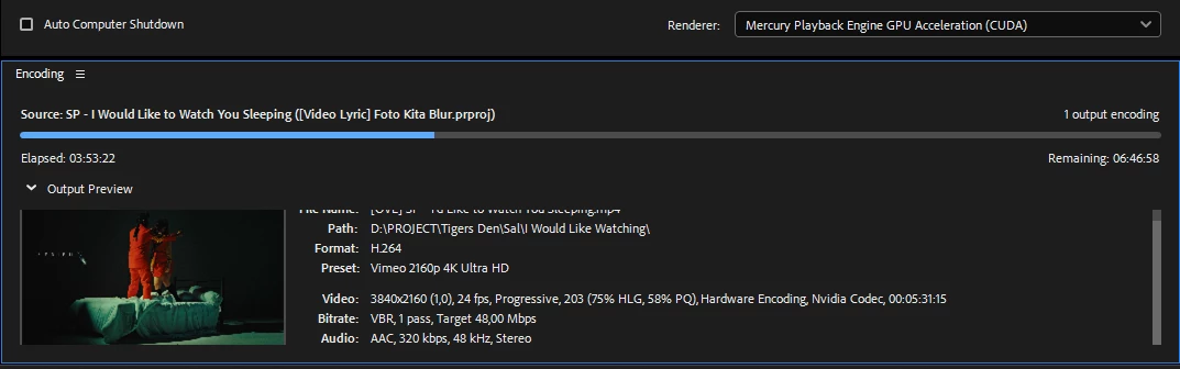 So, what's exactly happening here? Why it takes so long render? I got a simple motion by using opacity and a small masking with 41 pre comps and maybe 7 layers each of it. I linked the AE file to Premiere and render it in Media Encoder. I know it's a 4K but it's just a strange.