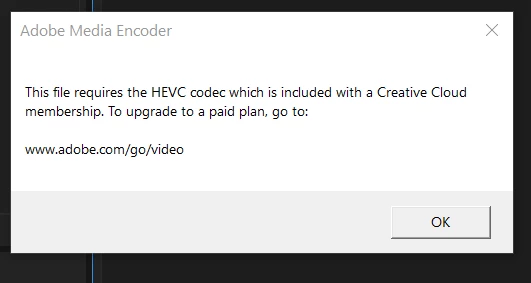 Unable to Encode due to HEVC Codec Error