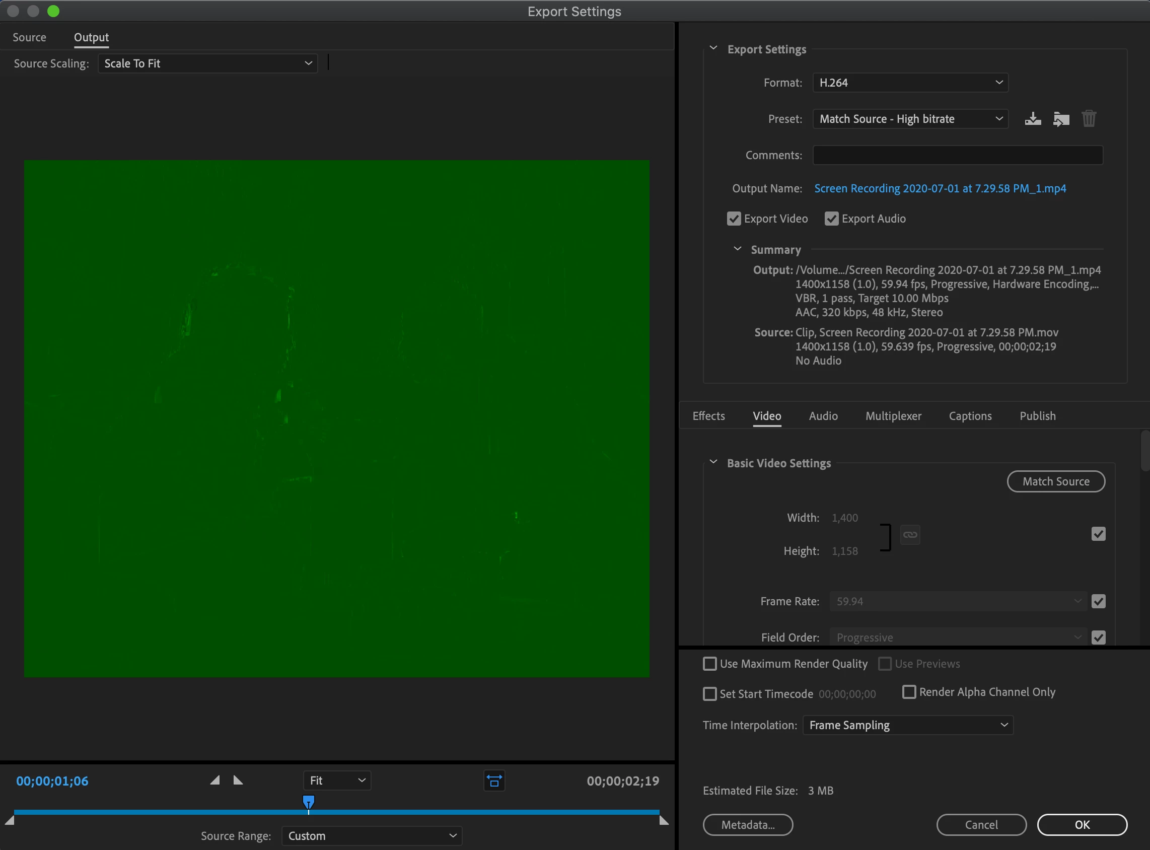 Video File Has Pixelated Glitches and Green Flashed When scrubbing and exported.
