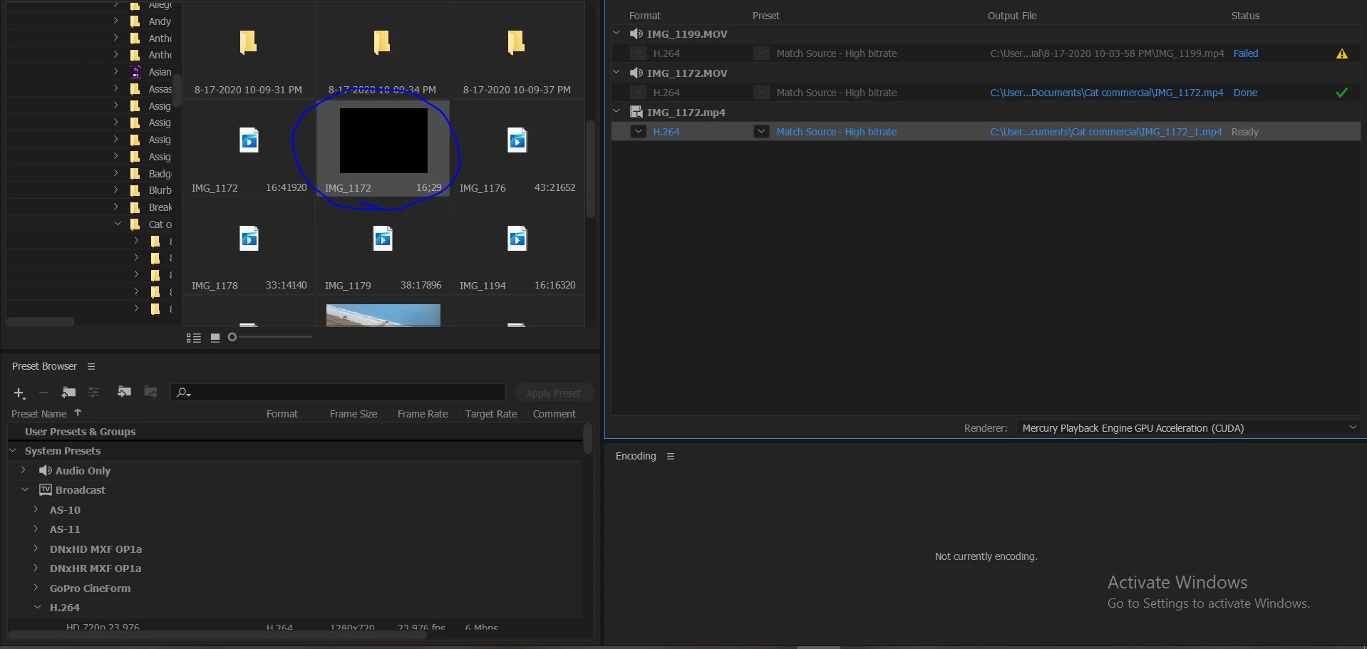 Video is black whenever I convert MOV to MP4 in AME