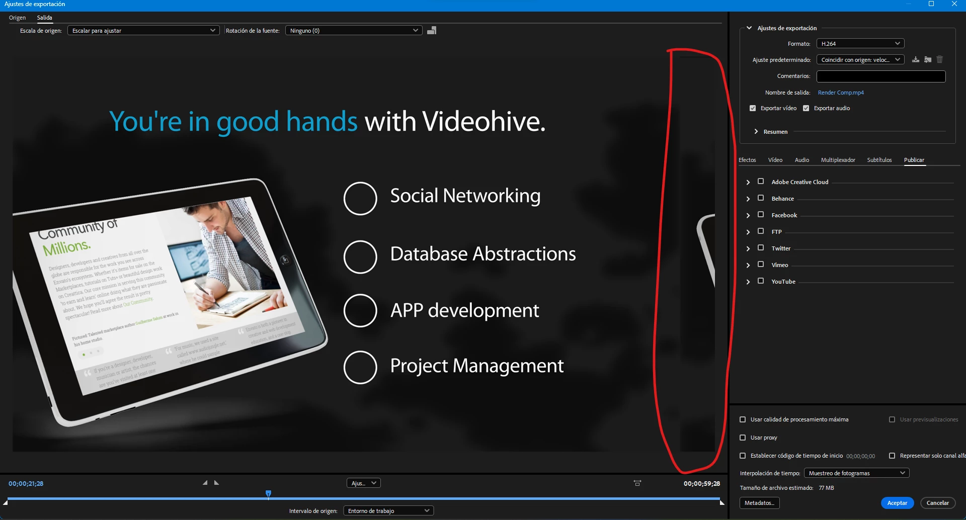 Todos los video que exporto desde after effect a Media encoder para procesarlos me aparecen asi; parece como que no sale cortado del lado izquierdo y se ve esa parte en el lado derecho como lo puedo solucionar