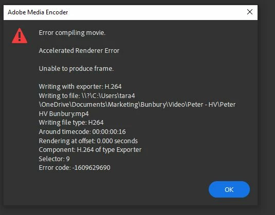 Video will not export - adobe media encoder - render